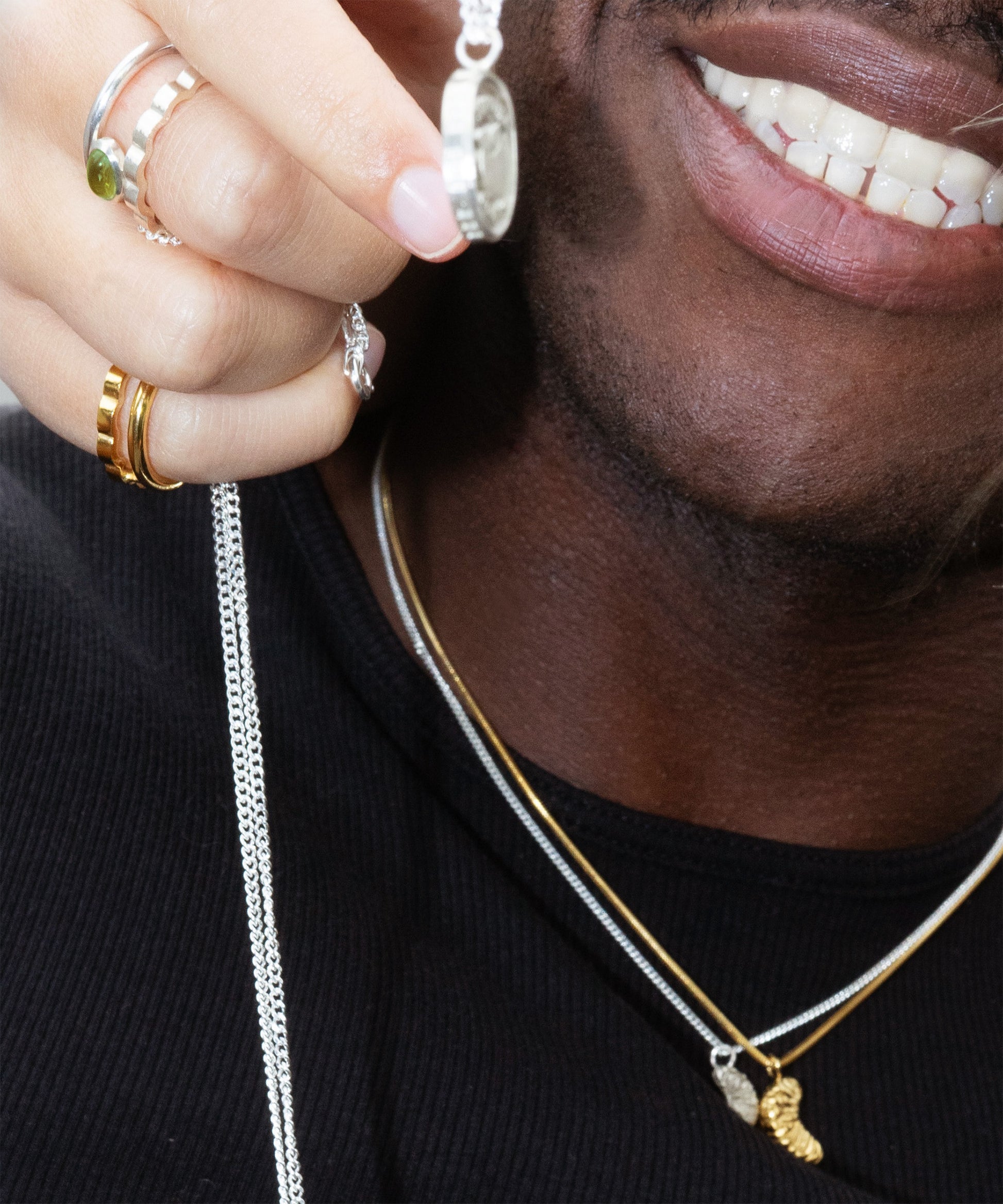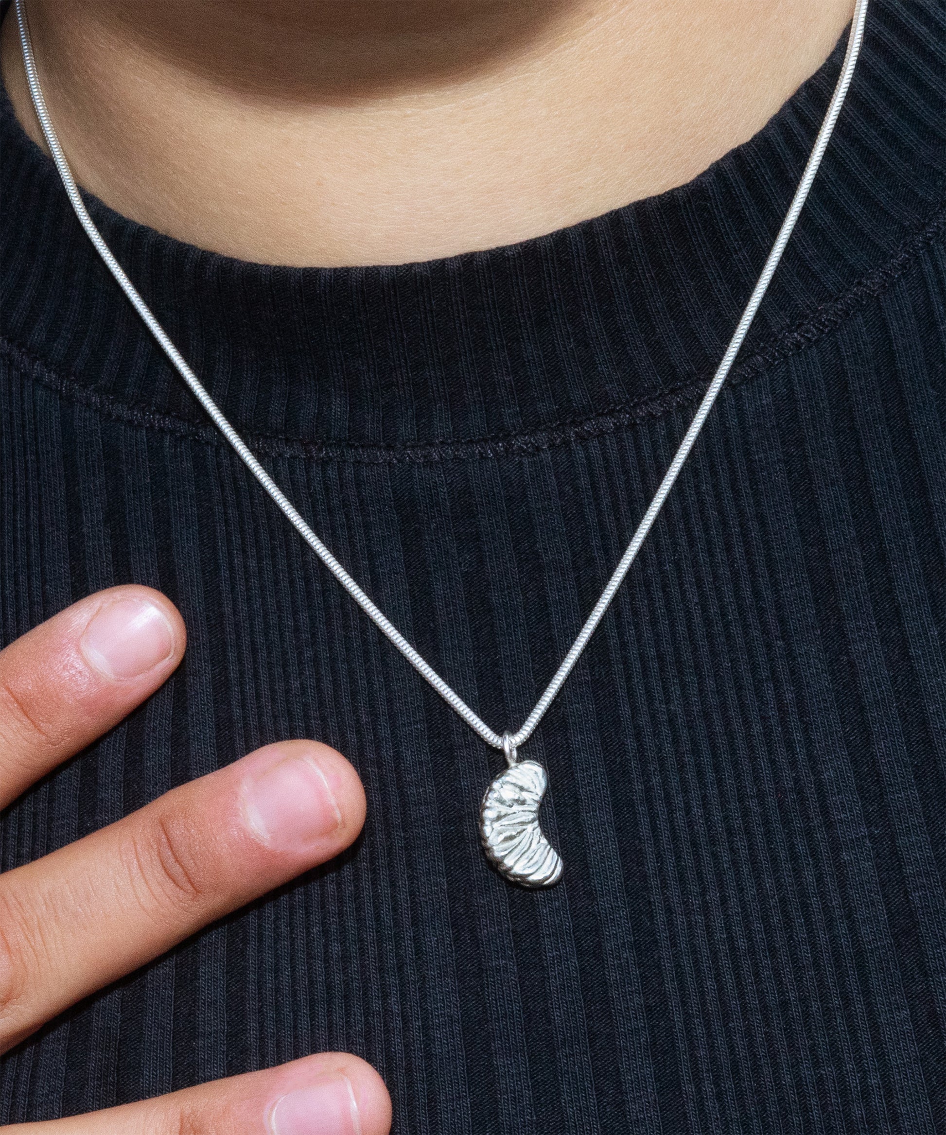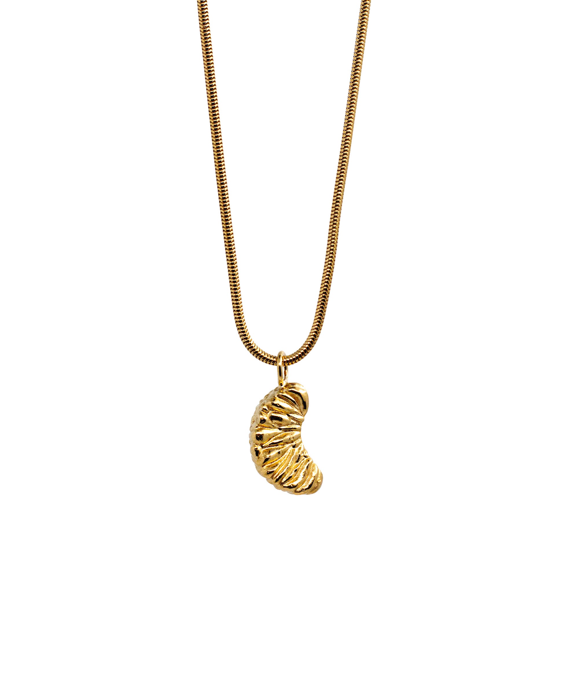 This necklace is a reminder that life tastes sweetest when you take it piece by piece. A single slice, gleaming in silver and gold, dangles just above your skin. A fleeting pleasure, turned permanent—so that it lingers long after the taste has gone.