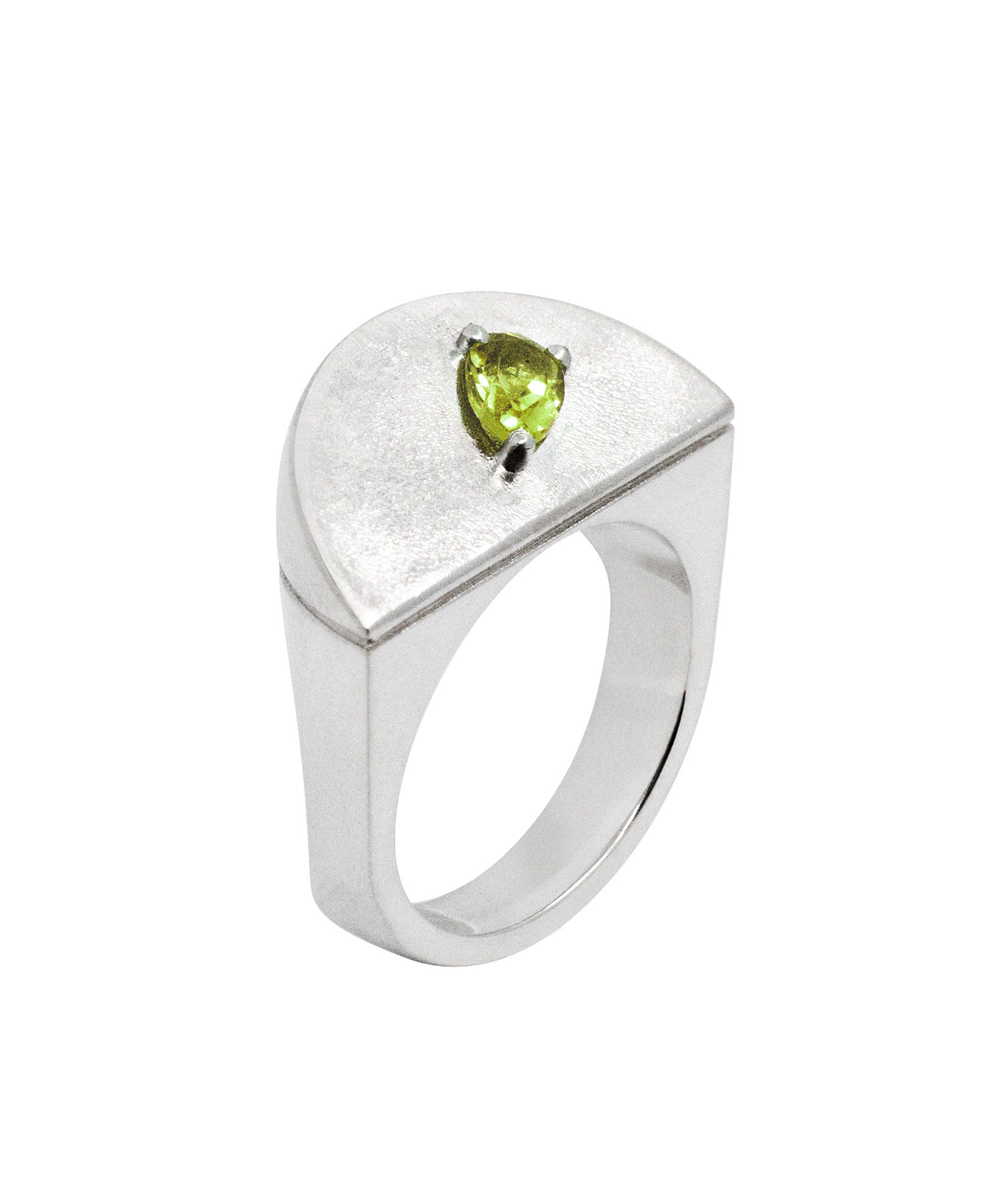 This statement ring captures that abundance in silver and gold. Mirroring the curve of a lime slice, the ring features a small gemstone, similar to the fruit’s pit. A piece grand enough to catch the eye, with a detail so delicate you can trace it with your fingertip.